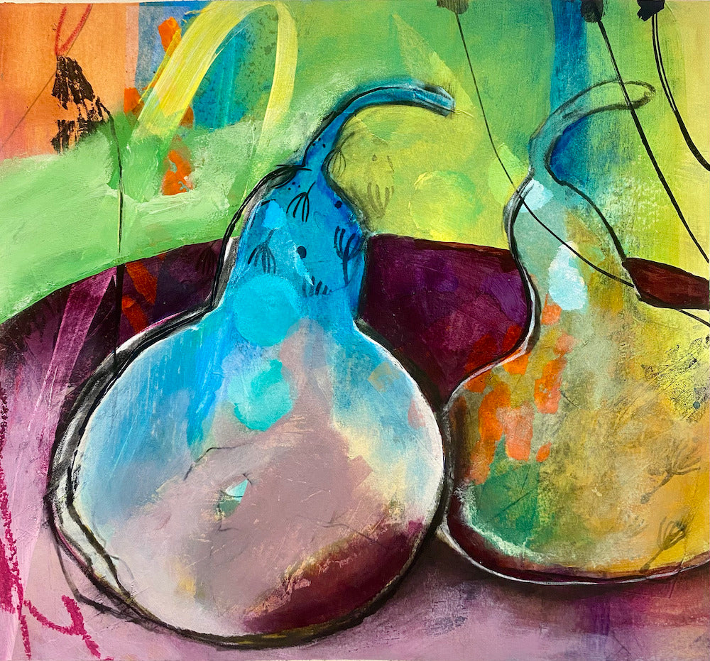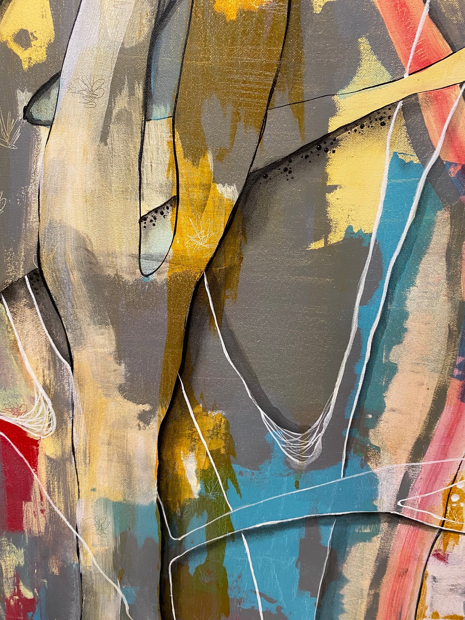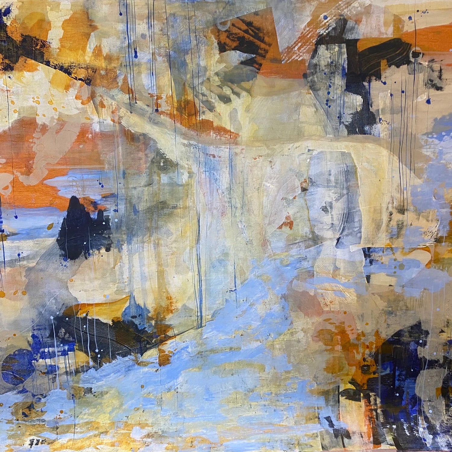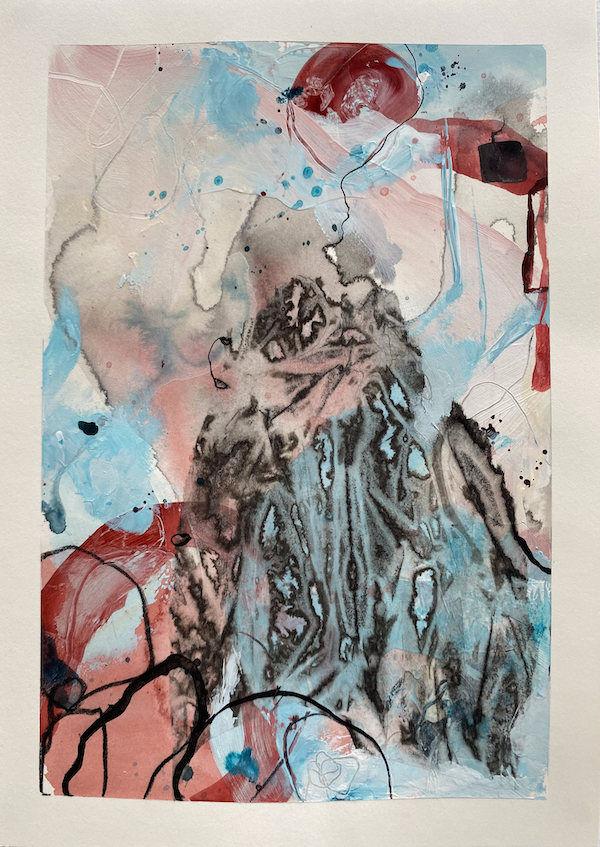 A combination of acrylic, ink, acrylic ink, hand-crafted tissue paper, oil pastel,...
