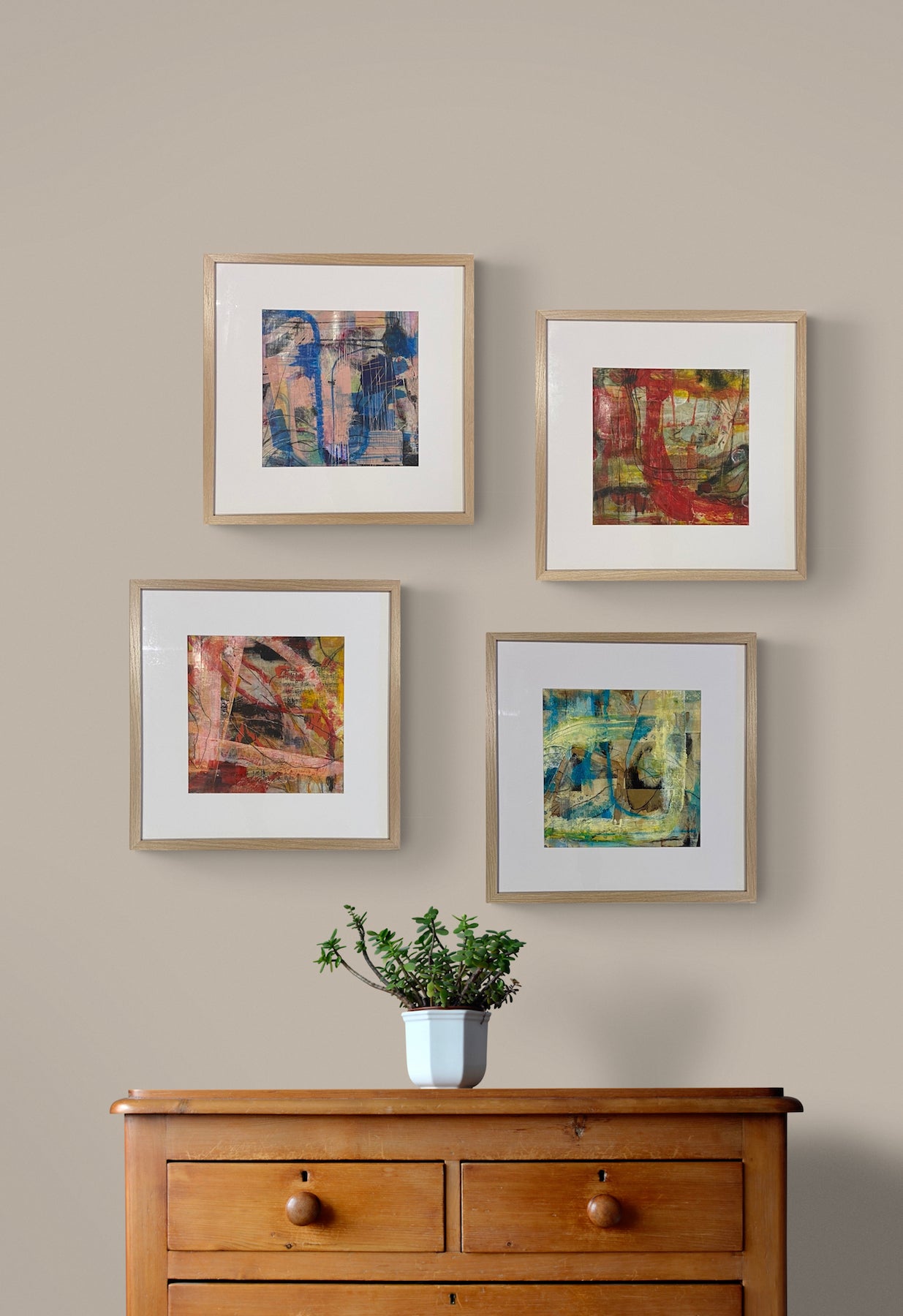 Each painting within this quadtriptych garners its individuality through the use of colour. Swathes of light and the use of both strong lines and curves pull the four together and ensure cohesion. Conscious layering adds depth to each painting along with both saturated and muted colour application. With this series, it’s easy to become submerged in the wonder created by intentional colour choice and rich, complex layering.