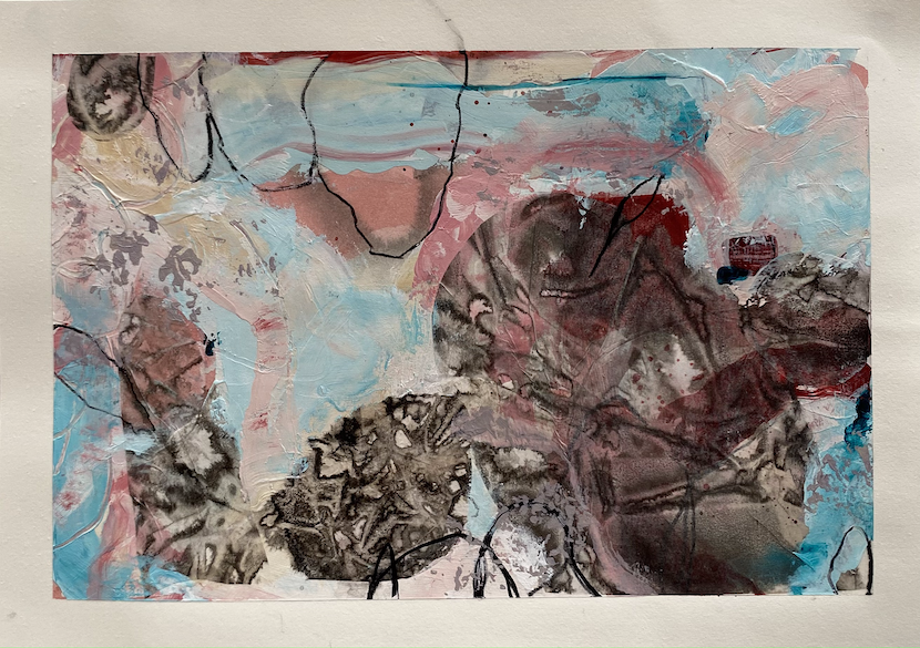 Utilising a mixed media approach, various materials and techniques are combined to evoke a sense of texture and depth. The artwork becomes an expressive dynamic surface that echoes the raw energy of the environment.