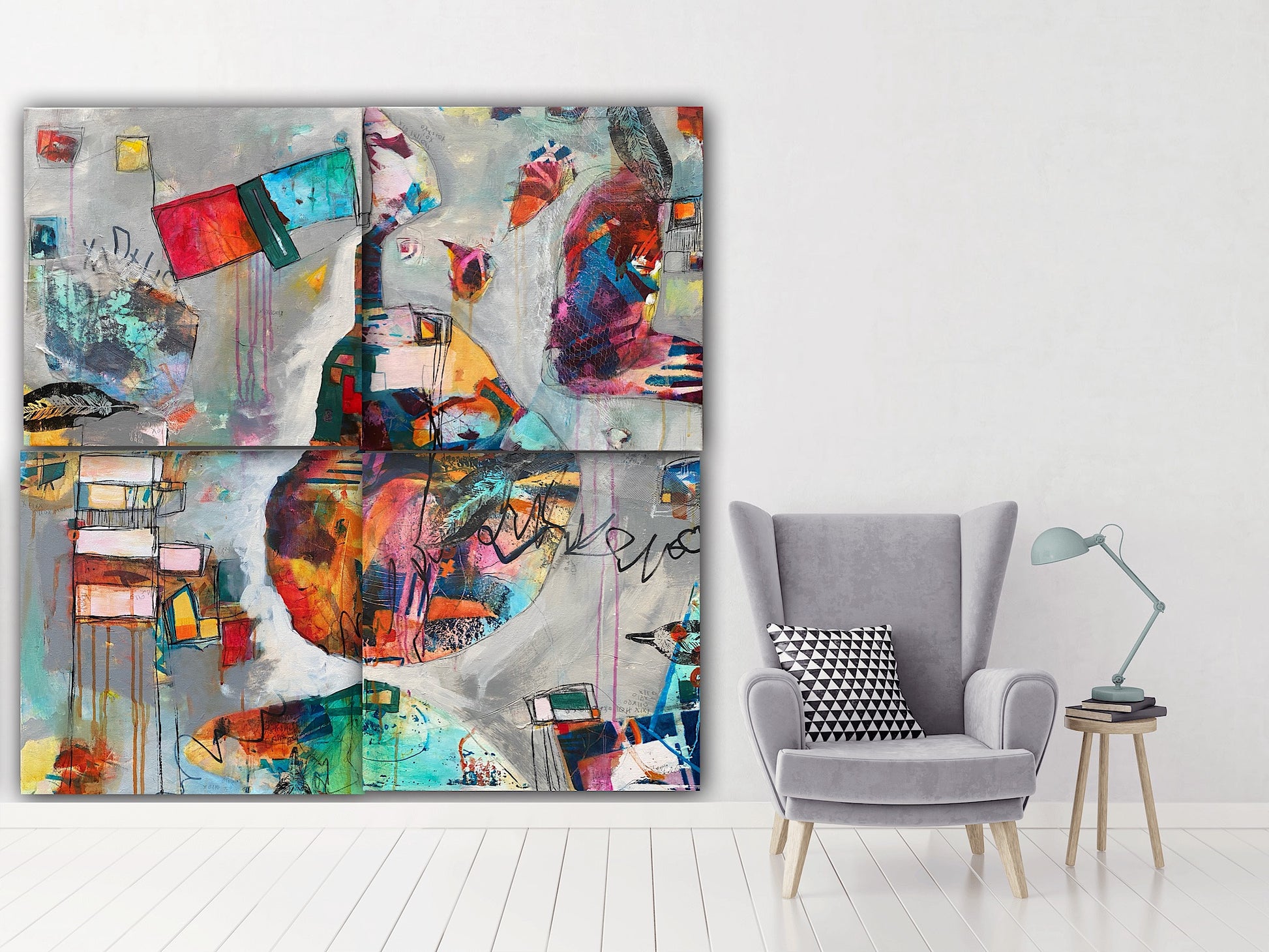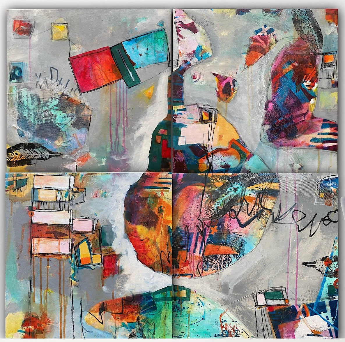 This artwork is comprised of 4 canvas panels each 50 x 50 cm.