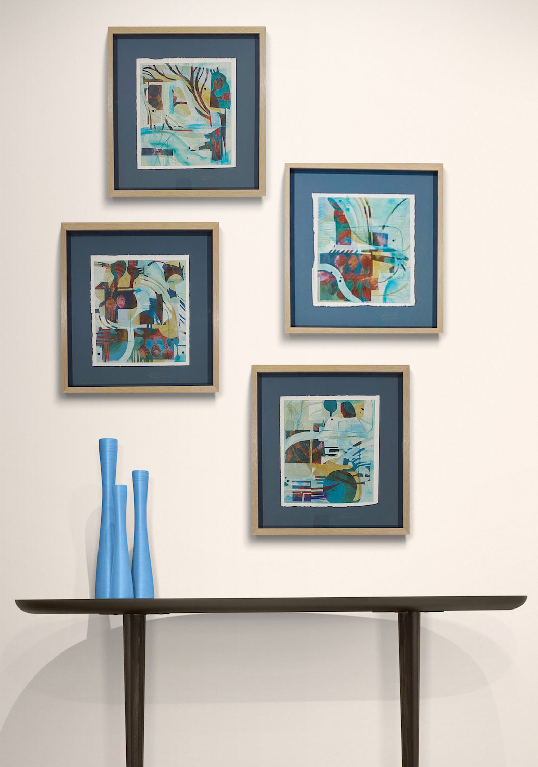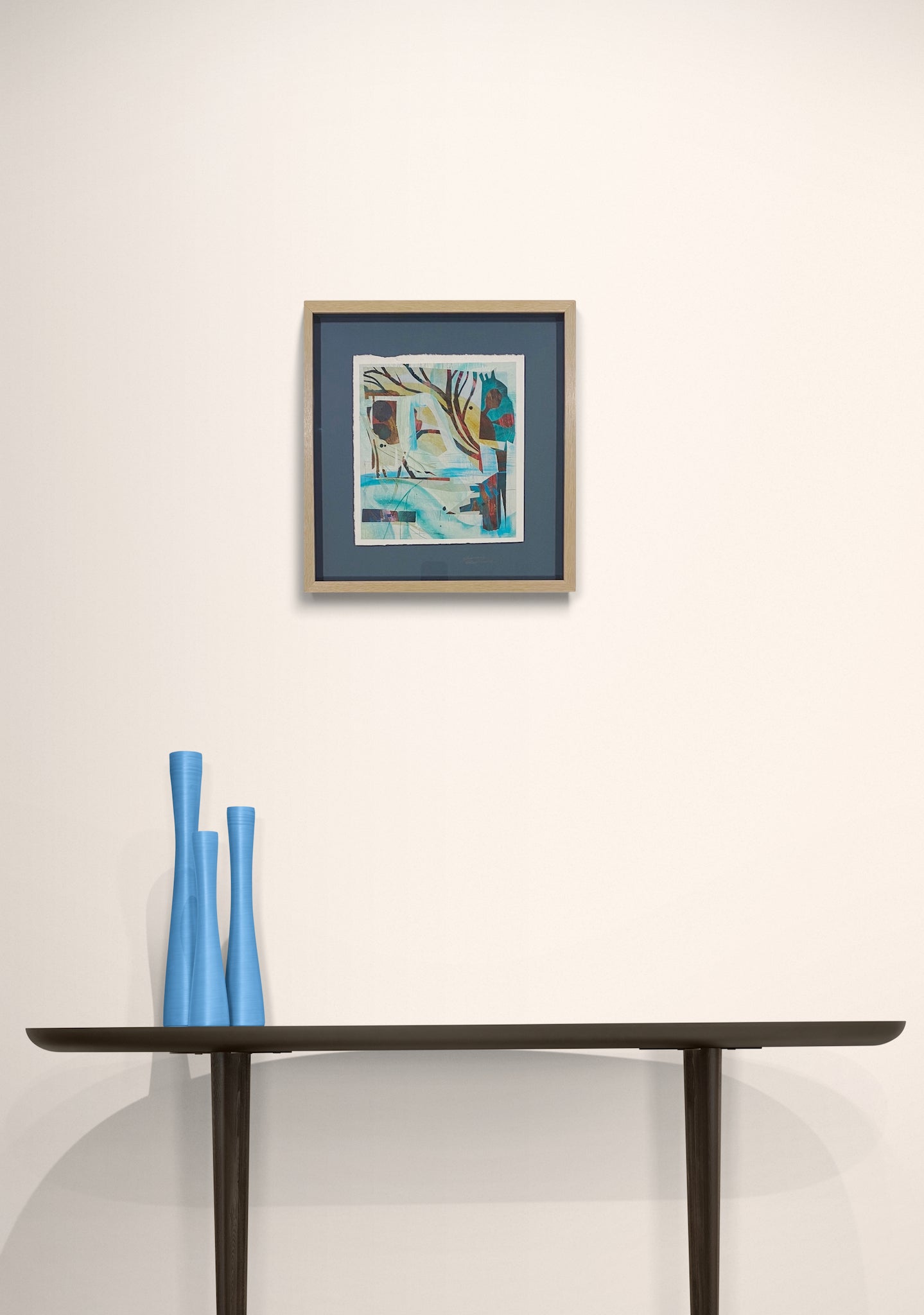 This is 1 of 6 painting in a series. In series of paintings plays with familiar forms and wildly distorts them to create new, thought provoking images. Harmoniously crafted with both subtle and saturated colours, each piece nods to its neighbour with a striking palette of colours highlighting focal points. Soft flowing strokes juxtapose with purposeful defined lines to create a series which is both connected and individually representative.