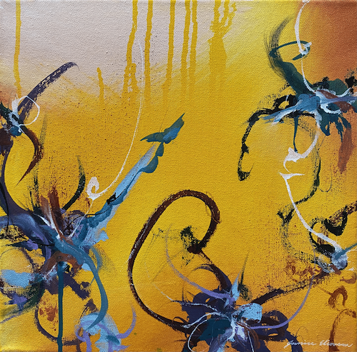 Warm open spaces opportunity for resting the eye between the motion filled line work. An uplifting vibrant visual joy celebrating everything about growth and delight.