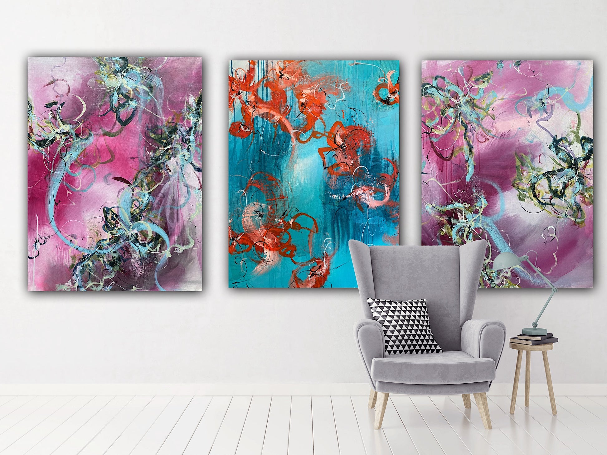 This artwork pairs fabulously with 'Funky Pink' and 'Written in the Wind' to make a sensational and dynamic triptych spanning almost 2 meters.