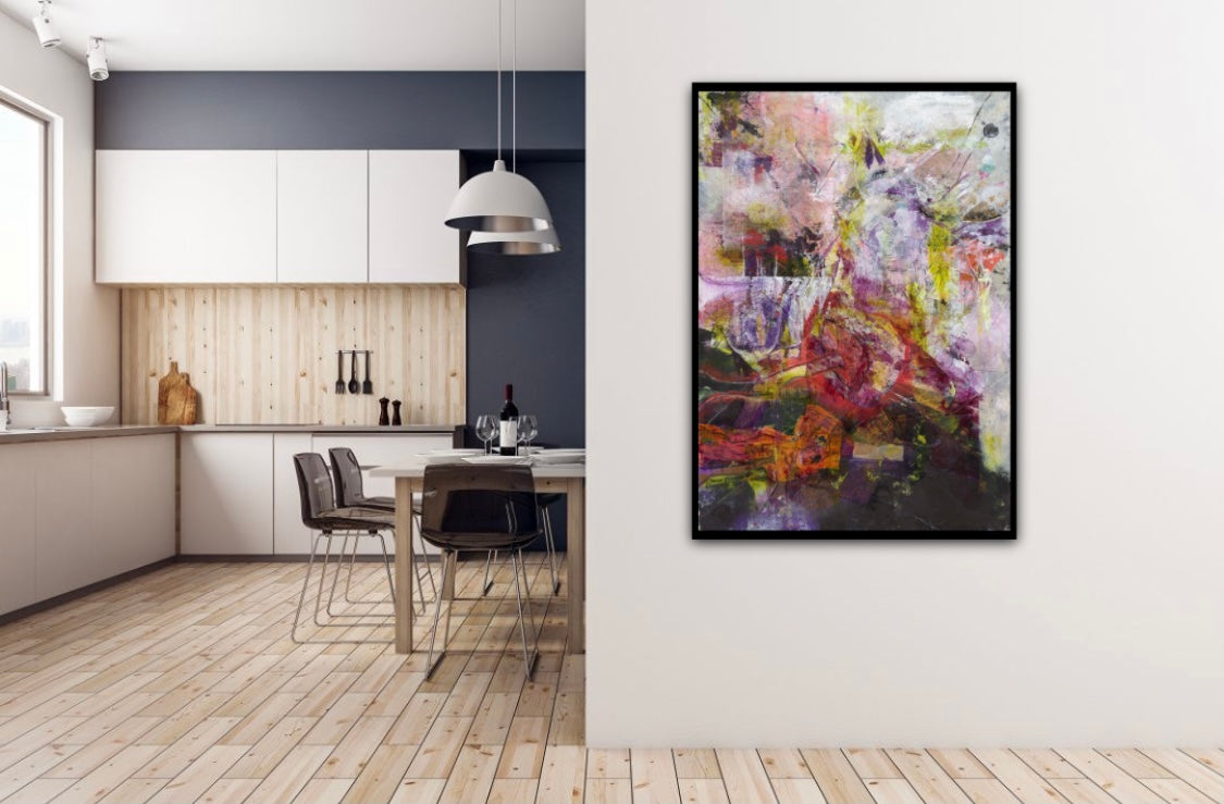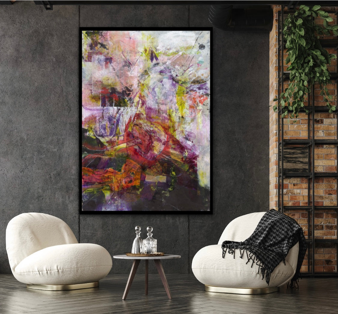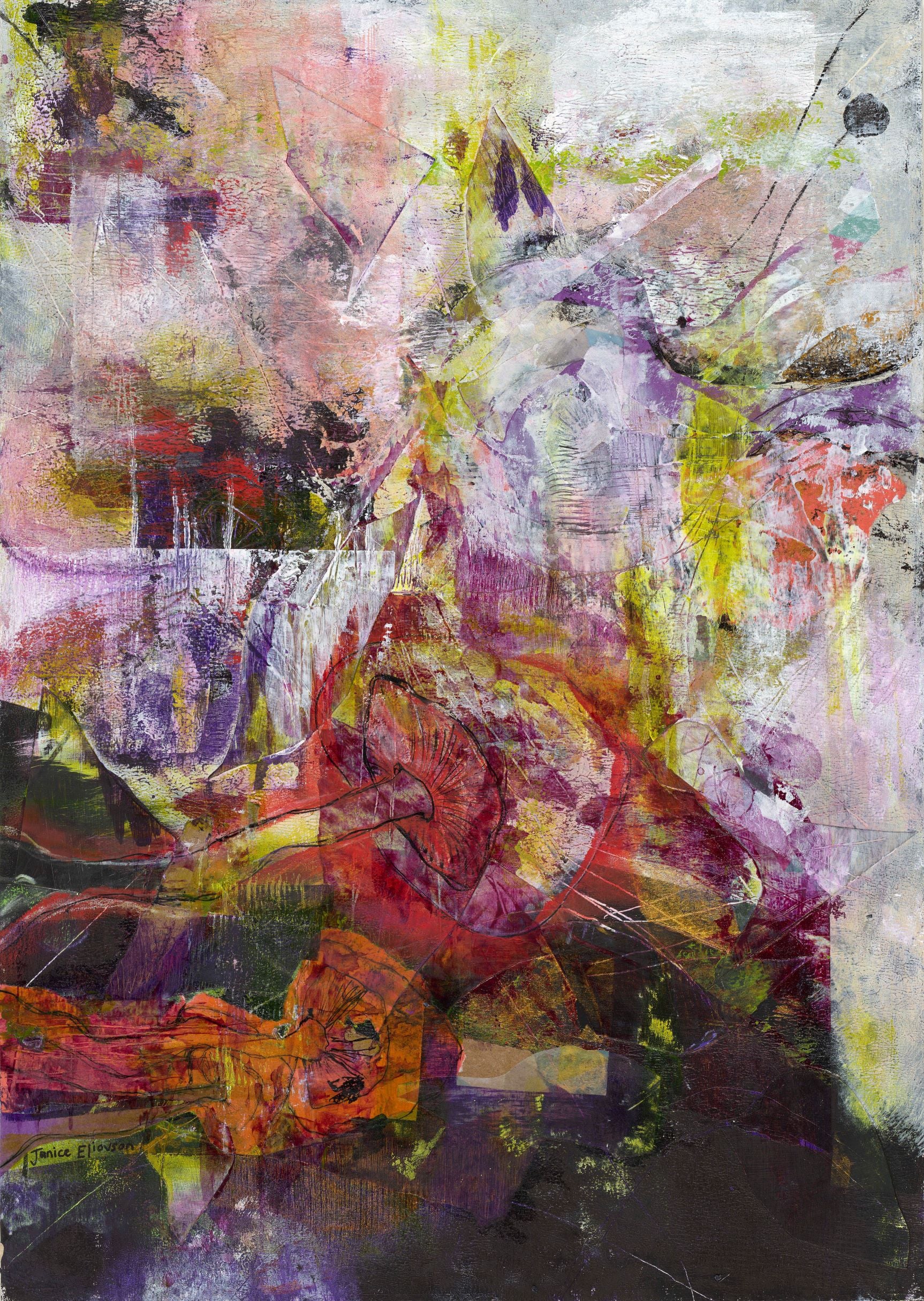 An abstract mixed media piece celebrating the secrets of mushrooms.