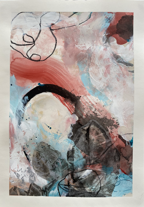 The artwork’s busy textured forms are intricately woven with energetic brushstrokes and considered mark-making, conveying a sense of movement, vitality and life.