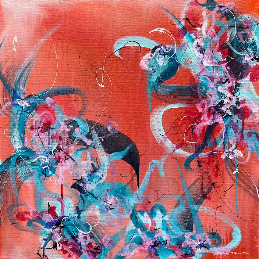 This artwork speak in an abstract manner of blooming against a light source. The contrast between still open areas and energetic movement from creation. Both important aspects in life which have a symbiotic relationships.